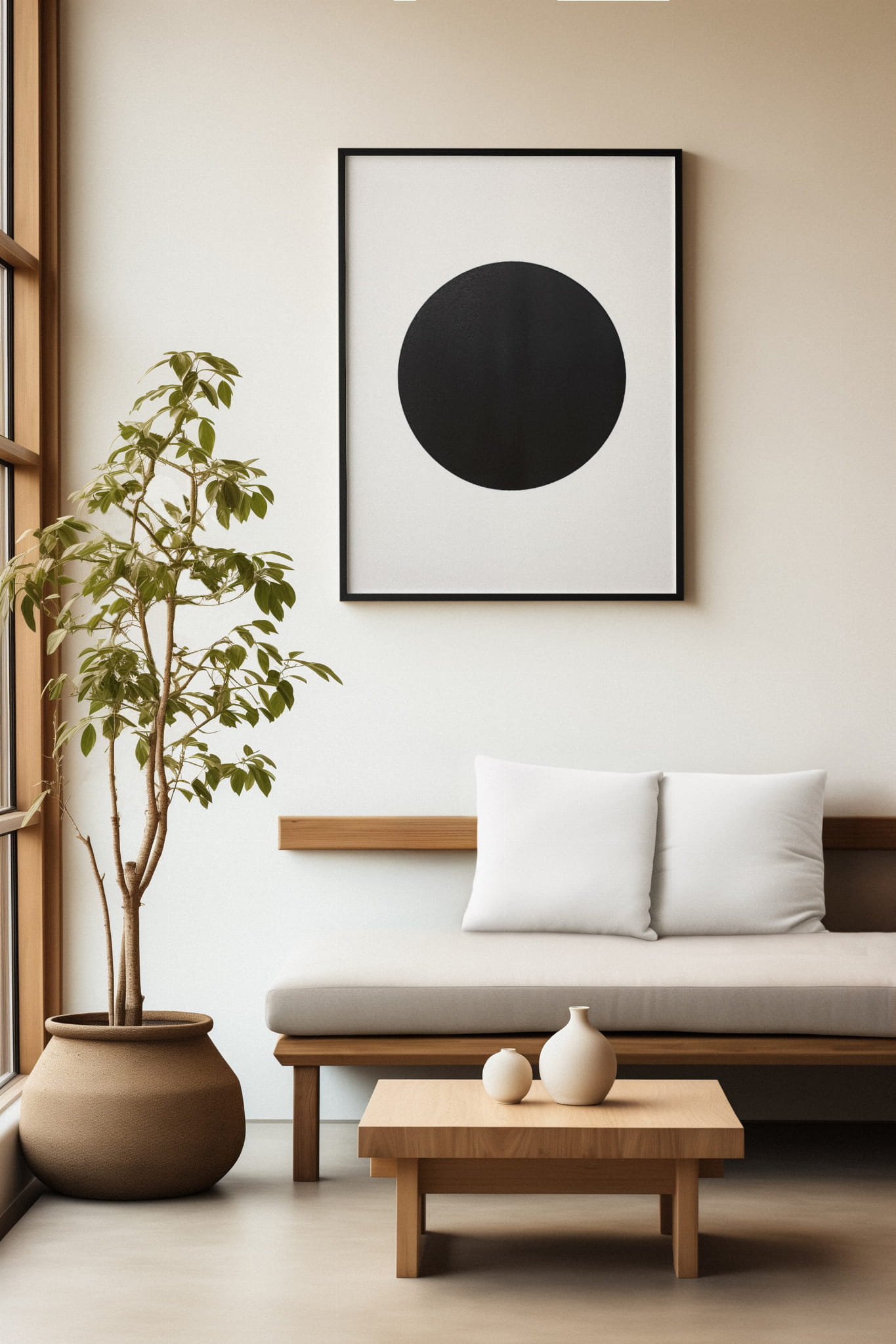 Minimalistyczna grafika przedstawiająca prostą, geometryczną formę. Utrzymana w monochromatycznych kolorach, pasuje do nowoczesnych wnętrz. Doskonale podkreśla estetykę prostoty i kontrastu.