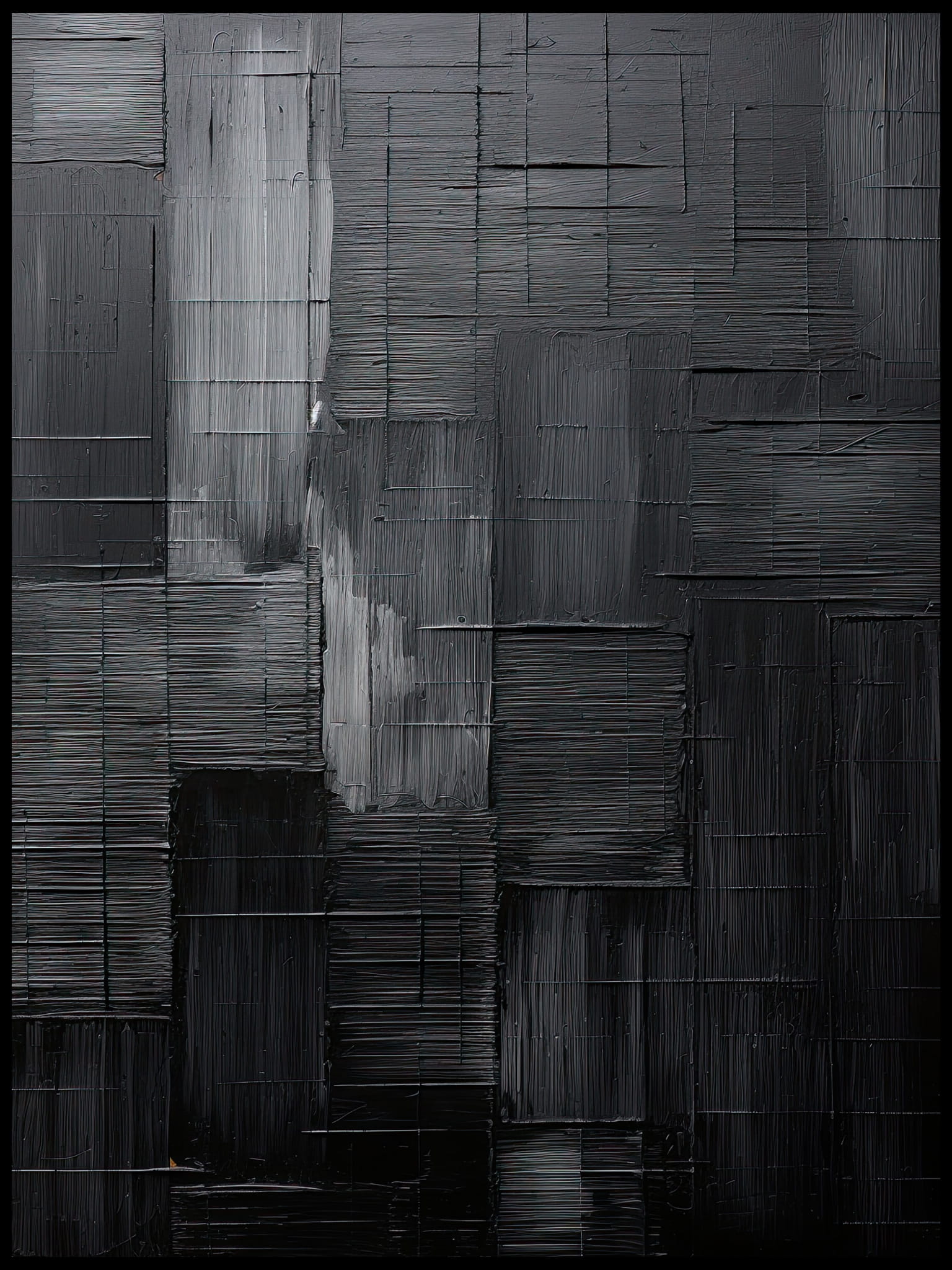 Plakat w stonowanej kolorystyce, idealny do nowoczesnych wnętrz. Dominują ciemne barwy, które wprowadzają głębię i elegancję. Abstrakcyjny wzór tworzy unikalny efekt wizualny. Może stanowić wyjątkową dekorację do biura lub mieszkania.