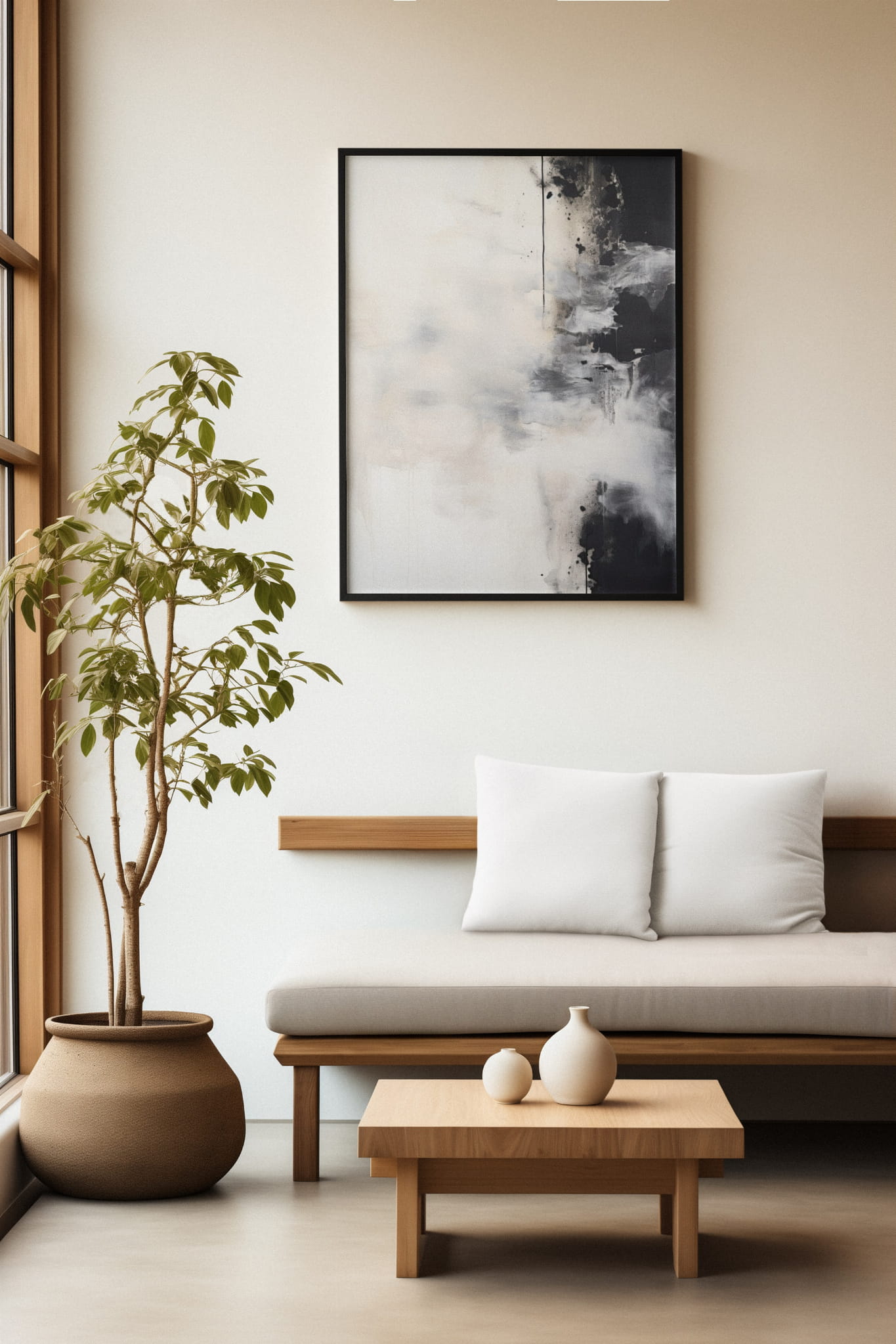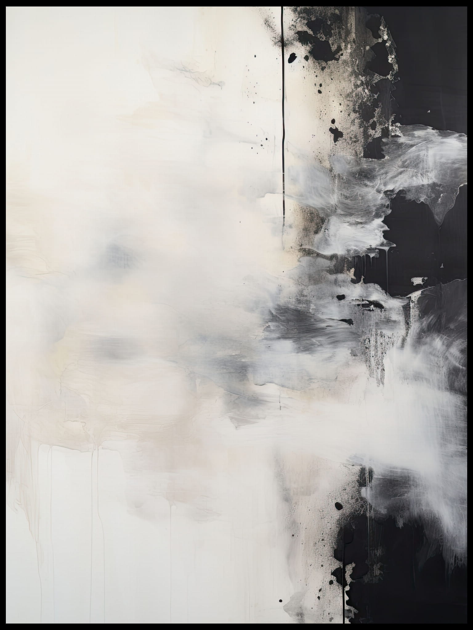 Ten plakat wprowadza delikatną grę między światłem a cieniem, tworząc efekt eterycznej mgły. Minimalistyczne połączenie kontrastujących kolorów sprawia, że obraz emanuje spokojem i harmonią. Idealnie nadaje się do nowoczesnych, przestronnych wnętrz, gdzie subtelność detali może być doceniona.