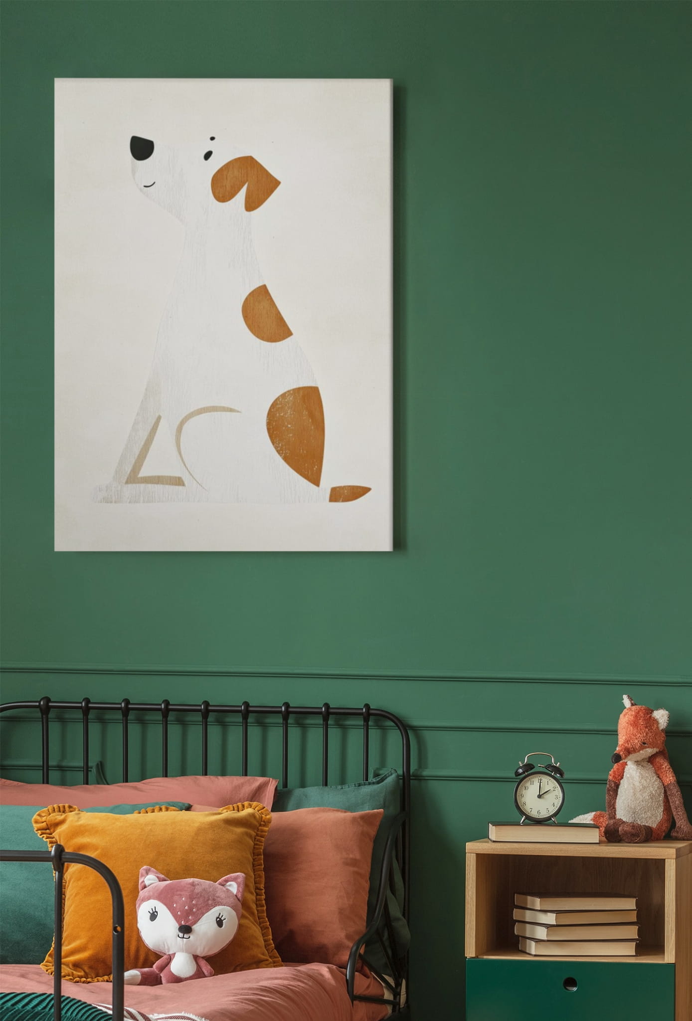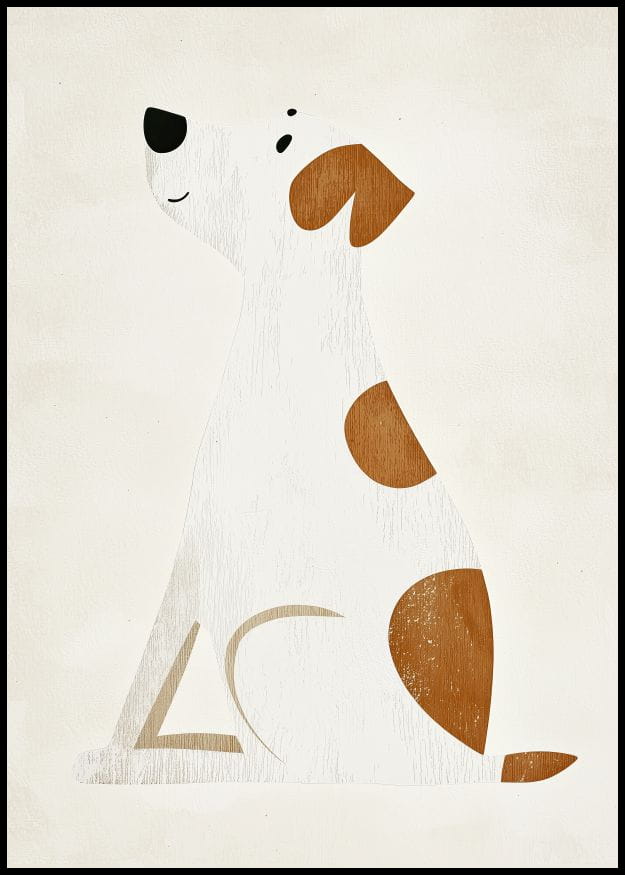 Ilustracja przedstawia siedzącego psa na jasnym tle.