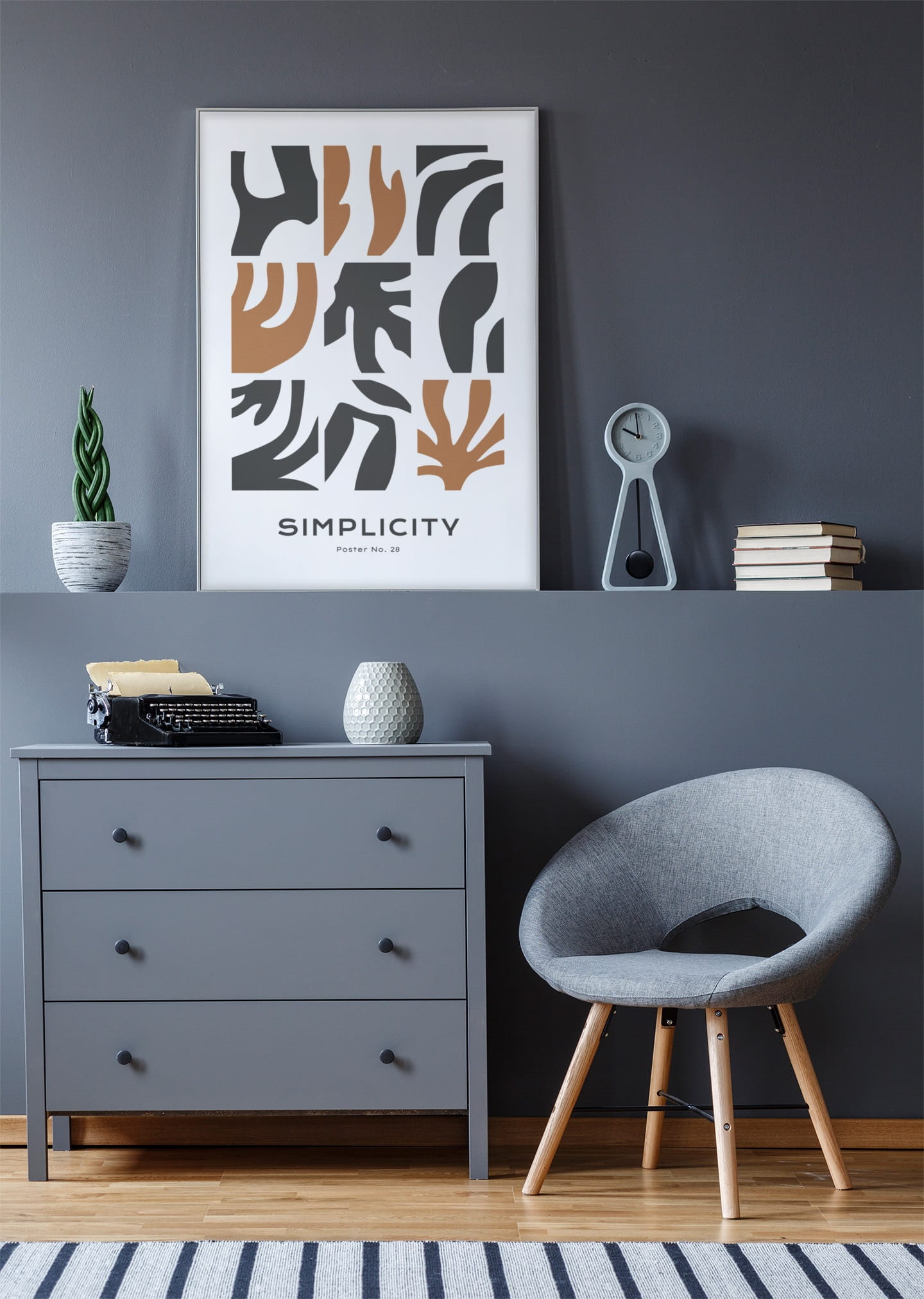 Ilustracja przedstawia zestaw abstrakcyjnych, nieregularnych kształtów w kolorach czarnym i brązowym na białym tle.
