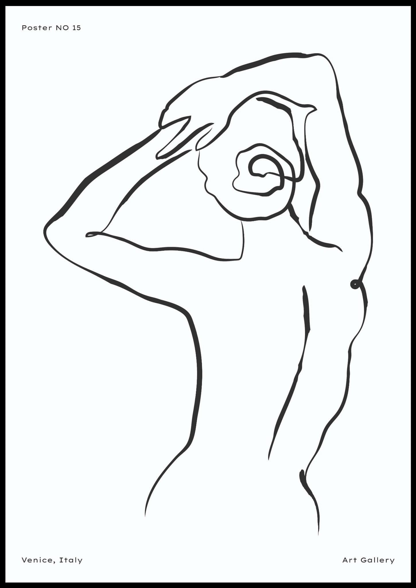 Ilustracja przedstawia sylwetkę kobiety z tyłu, wykonaną za pomocą czarnych, płynnych linii na białym tle. Rysunek jest minimalistyczny i subtelny, oddając delikatność kobiecej formy. Całość emanuje elegancją i spokojem.